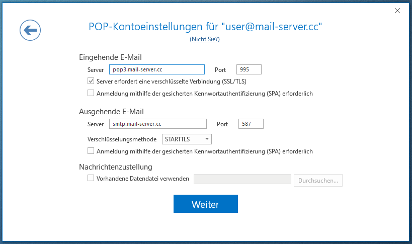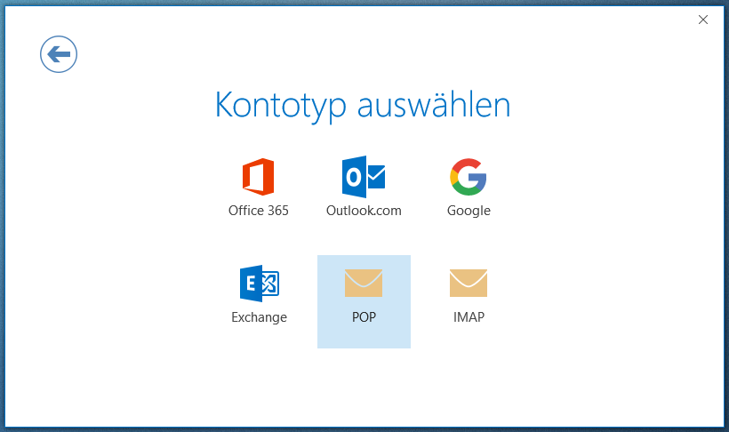 Wählen Sie Kontotyp POP.