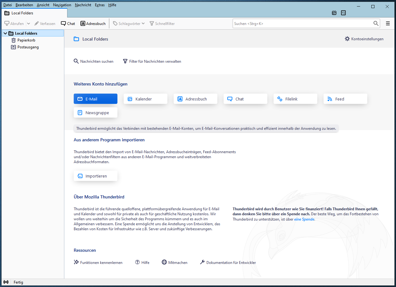 Beim ersten start von Thunderbird erscheint der Setup Assistent automatisch.