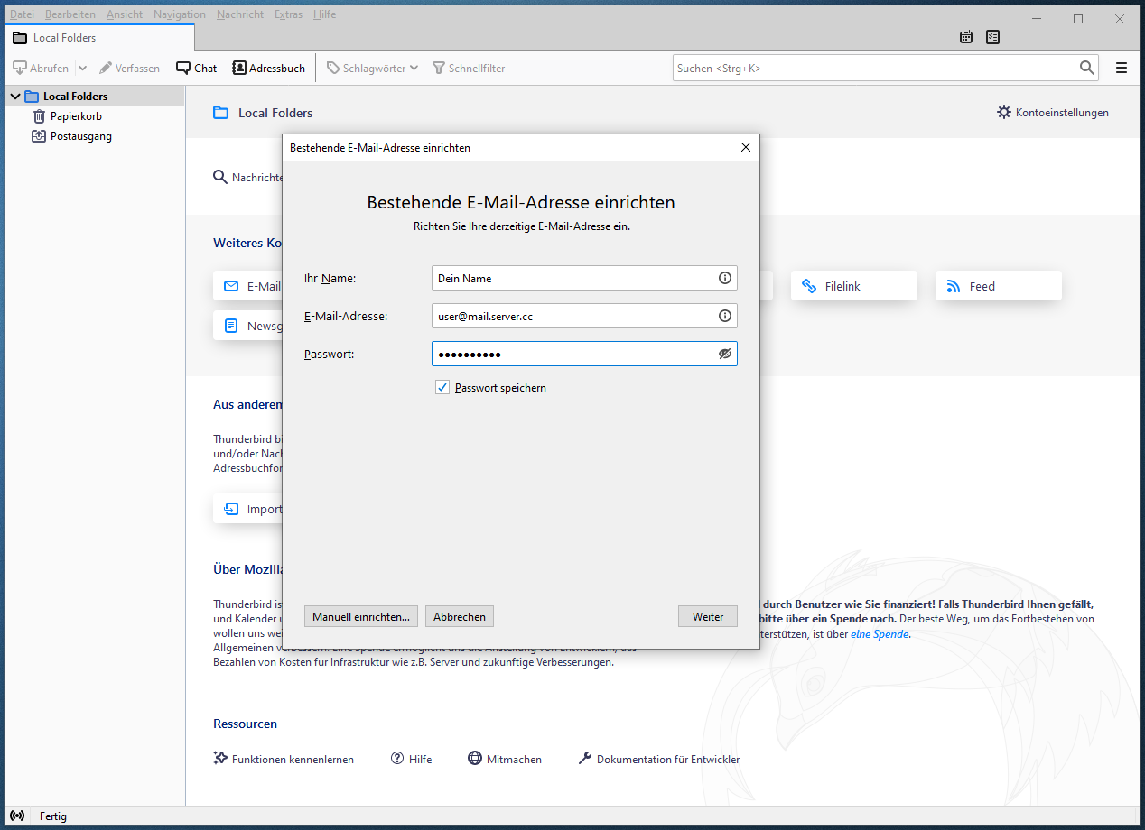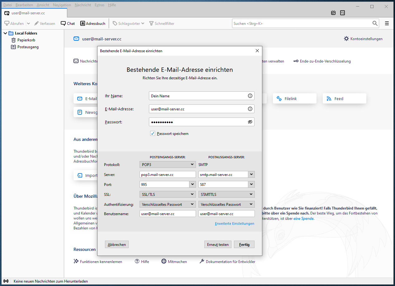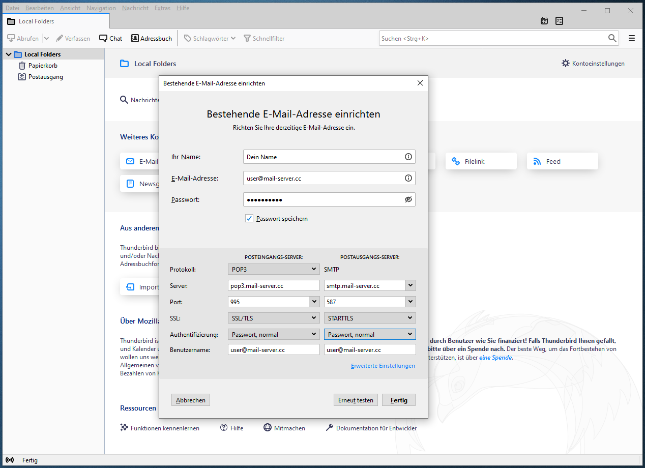 Einrichten von Thunderbird mit POP3