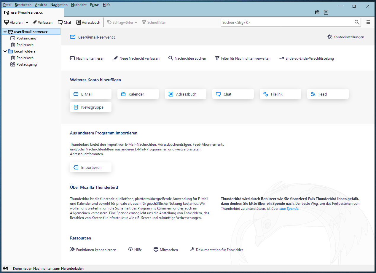 Zusätzliche e-Mail Ordner wie Entwürfe, Spam und Gesendet werden automatisch von Thunderbird erstellt wenn benötigt.