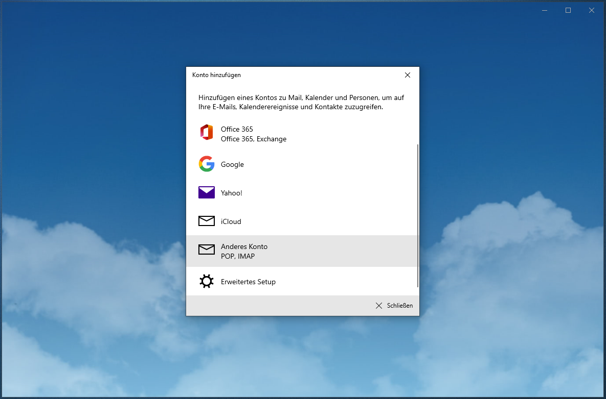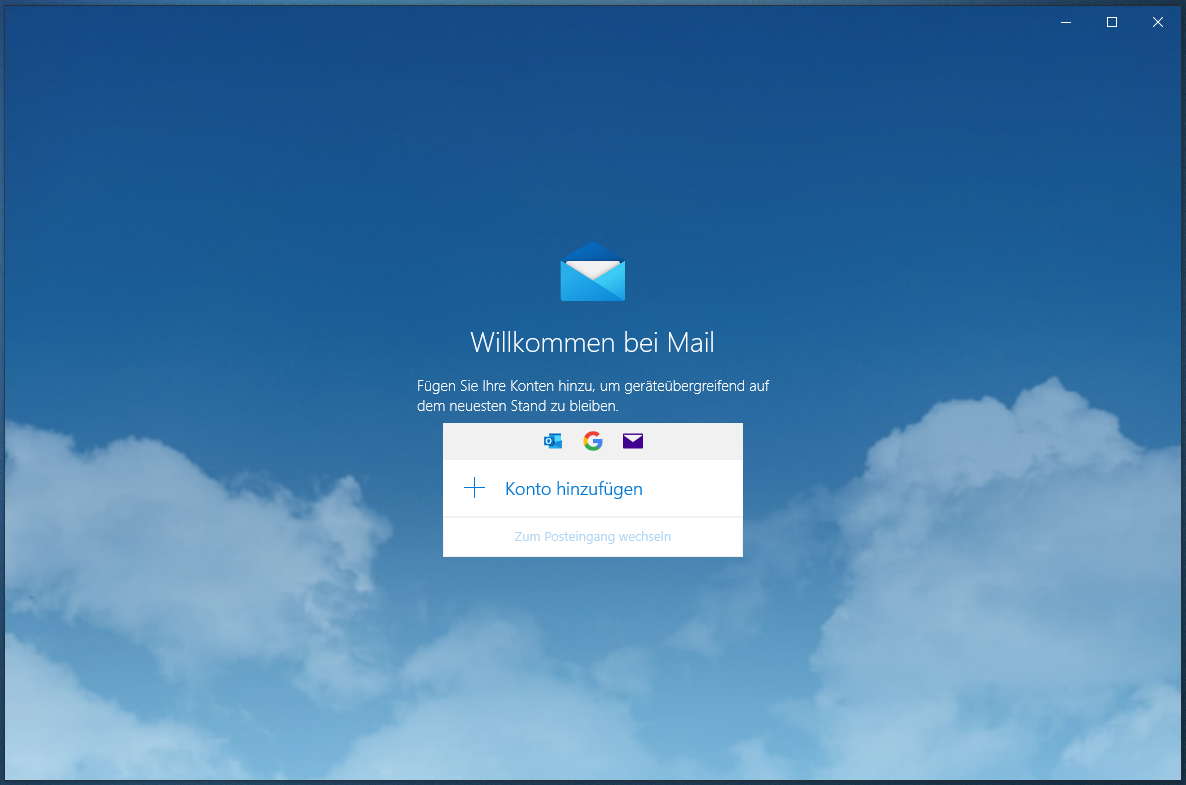 Wählen sie beim ersten start von Windows Mail + Konto hinzufügen.
