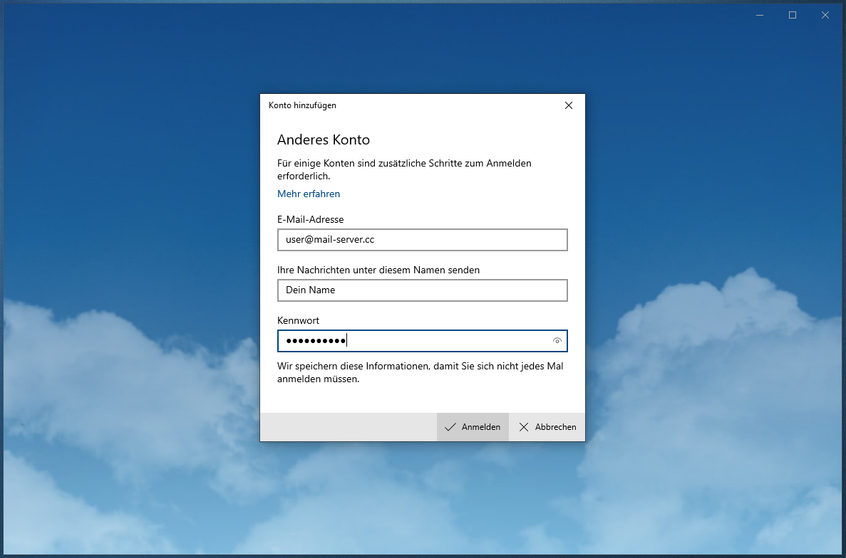 Geben Sie Ihren e-Mail Benutzer (e-Mail Addresse) und Passwort ein.