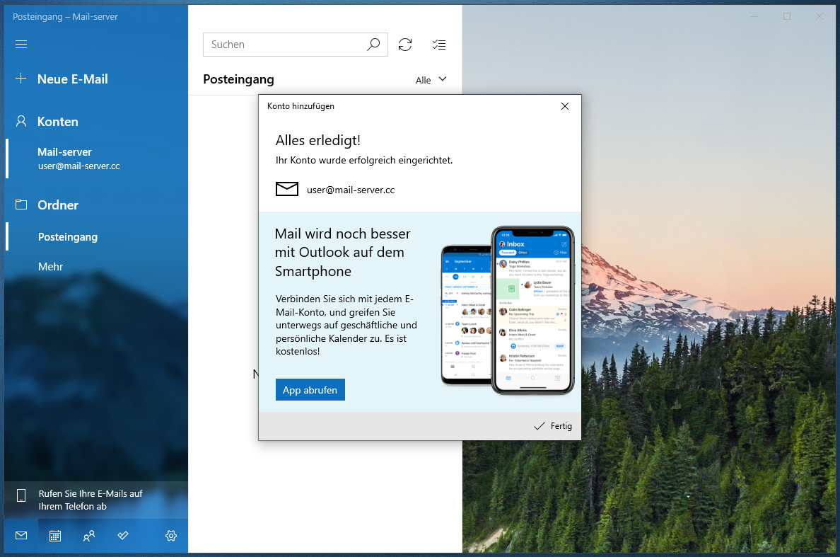 Wurden die e-Mail Benutzerdaten korrekt eingegeben ist der Account fertig eingerichtet.
